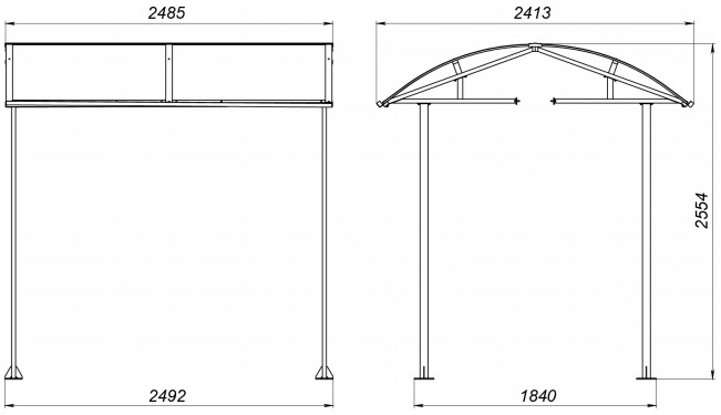 Крыша турникета PERCo-RTD-20. Четыре вертикальные стойки, свод крыши из двух частей. Стойки и каркас крыши – оцинкованная сталь, синий цвет, заполнение крыши – поликарбонатный пластик, габаритные размеры 2500х2420х2560мм ,масса 130кг