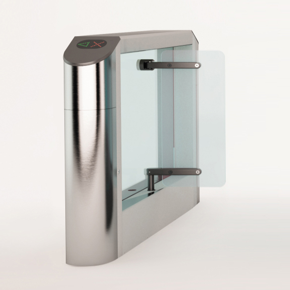 Турникет с распашными створками электромеханический и картоприемником. Корпус выполнен из шлифованной нержавеющей стали, стеклянные стенки и дверцы из закаленного стекла с электроприводом, светодиодный дисплей с крышкой из полированного искусственного камня.