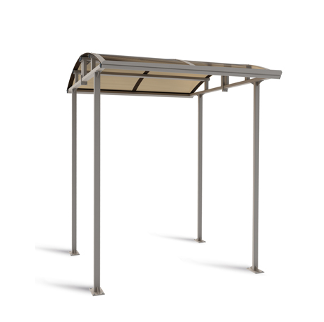 Крыша турникета PERCo-RTD-15. Четыре вертикальные стойки, свод крыши из двух частей. Стойки и каркас крыши – алюминиевые конструкции, покрытие «муар», светло-бежевый цвет с эффектом слюды, заполнение крыши – поликорбонатный пластик, габаритные размеры 2388х2015x2586мм