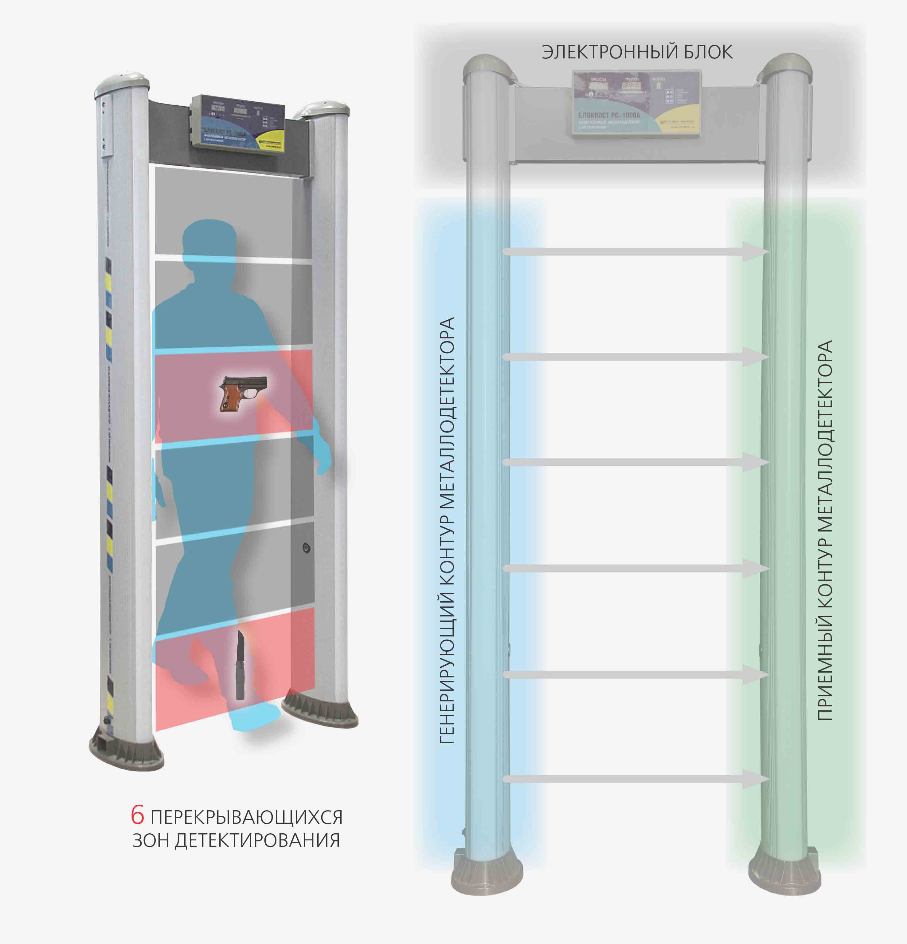 При встрече с таким предметом, расположенным на теле человека, проходящего через арочный металлоискатель, одна из радиоволн отражается от него и возвращается обратно быстрее, чем остальные волны. Прибор фиксирует время отражения сигнала и при изменении временного промежутка срабатывает сигнальное устройство.