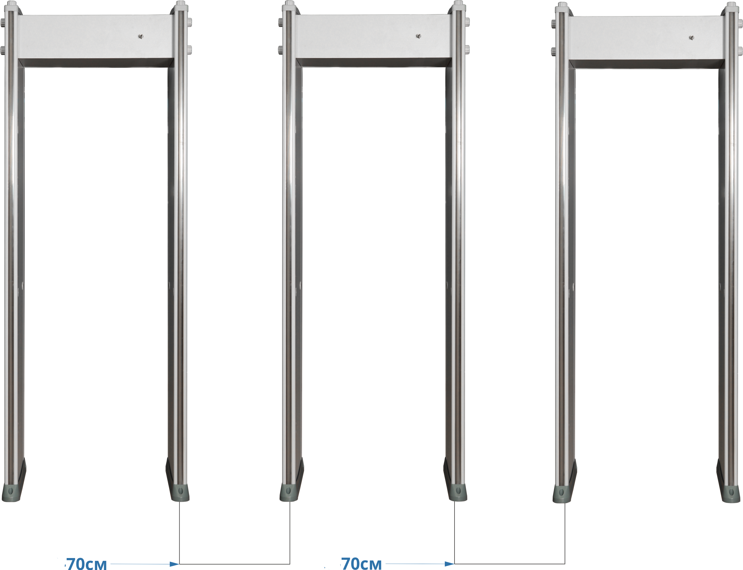 Металлодетектор БЛОКПОСТ РС-0300 обладает возможностью использования до 8 единиц при параллельной эксплуатации на расстоянии 70 см друг от друга.. Данное оборудование имеет 3 зоны обнаружения, благодаря чему снижаются взаимные помехи смежных металлодетекторов и обеспечивается возможность параллельной эксплуатации. Рекомендуется устанавливать разные значения рабочих частот для металлодетекторов стоящих рядом друг с другом.