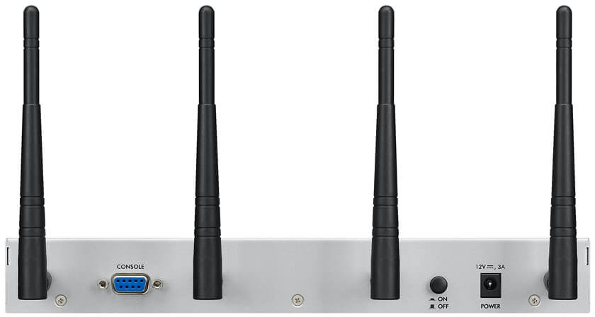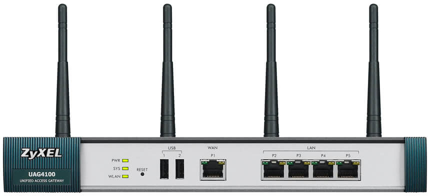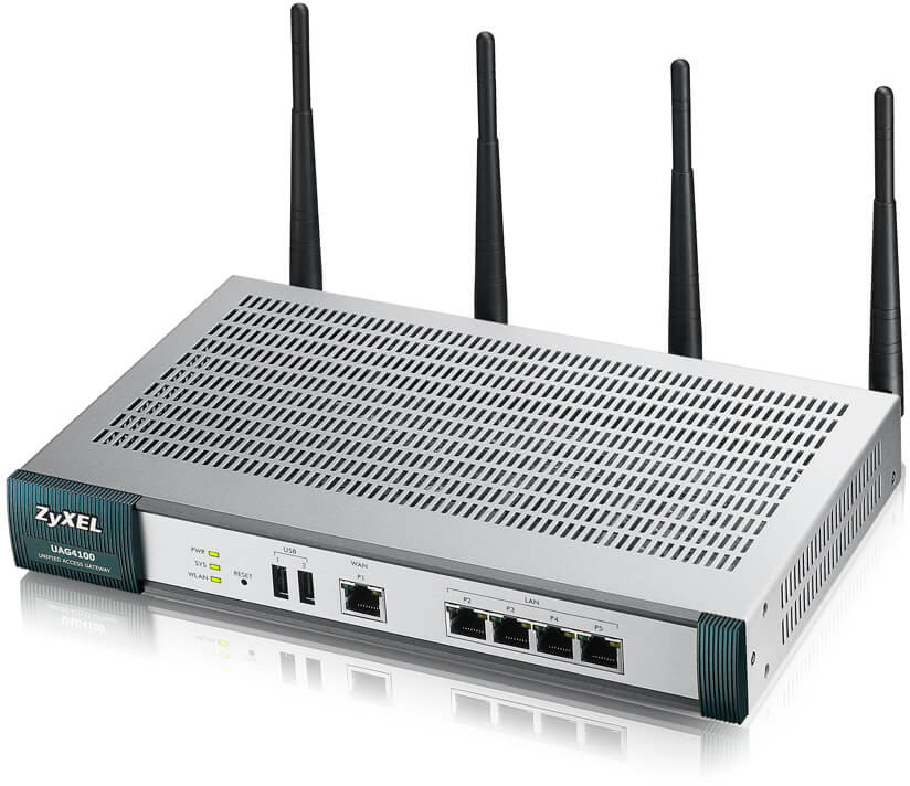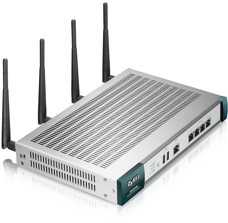 Для построения Wi-Fi сети UAG4100 сочетает в себе встроенную точку доступа стандарта 802.11n, работающую в диапазонах частот 2,4 и 5 ГГц одновременно, и контроллер беспроводных сетей с поддержкой до 16 различных точек доступа ZyXEL. Подключение к проводной локальной сети обеспечивают четыре порта Gigabit Ethernet.