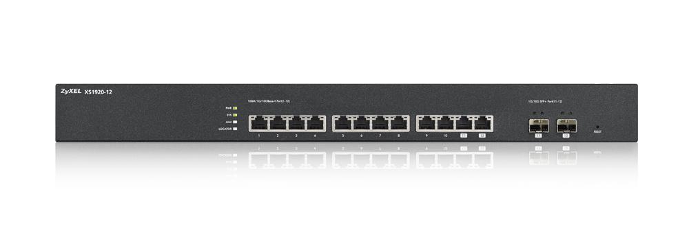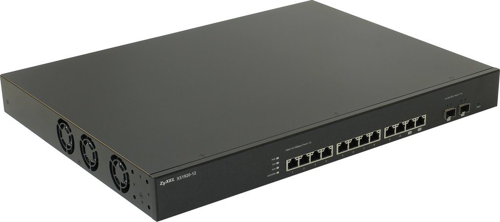 Коммутатор XS1920-12 предназначен для установки в сети предприятий с целью подключения серверов по интерфейсам 10 Гбит/с. Он оснащен 10 медными портами 10 Гбит/с RJ-45 и 2 слотами SFP+ для оптоволоконных соединений, которые совмещены с медными портами 10 Гбит/с RJ-45. Коммутационная матрица имеет неблокируемую архитектуру и обеспечивает одновременную передачу данных на 12 интерфейсах. В случае необходимости увеличения пропускной способности возможно агрегировать порты по протоколу LACP.