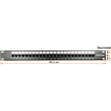 С лицевой стороны порты панели имеют цифровую маркировку. Предусмотрены площадки для дополнительной маркировки портов.