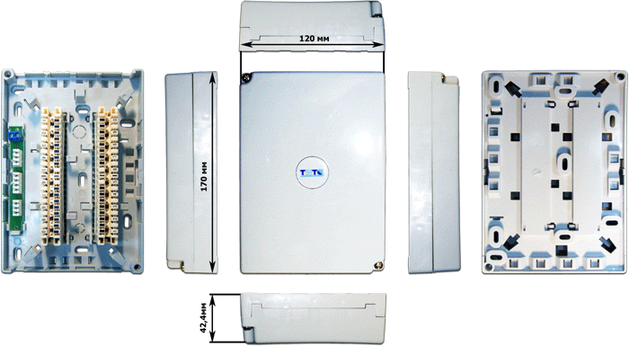 Настенная коробка с установленными плинтами, 1 размыкаемый плинт, 10 пар, пластик