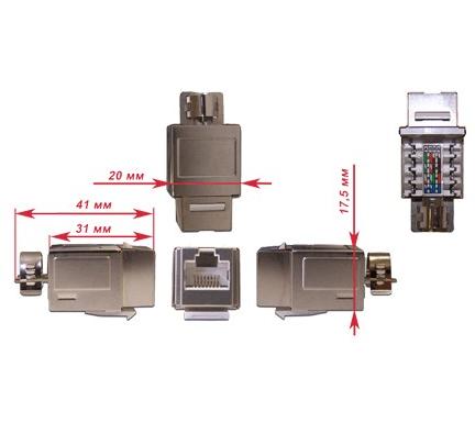 На лицевой стороне модуля смонтировано экранированное восьмиконтактное гнездо типа RJ-45, с обратной стороны установлен блок на восемь контактов типа IDC110, расположенных под углом 90 к лицевой поверхности модуля.