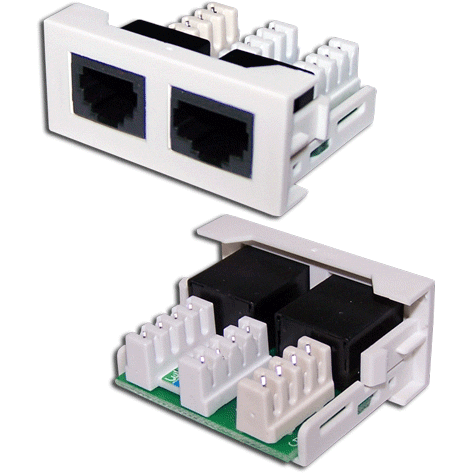 Вставка Mosaic, 22.5x45 1xRJ45 Cat.5e + 1xRJ12 Cat.3, белая