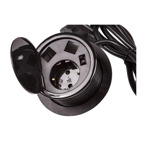 Лючок в стол на два кейстоуна + одна розетка со шнуром 1.8м, черный