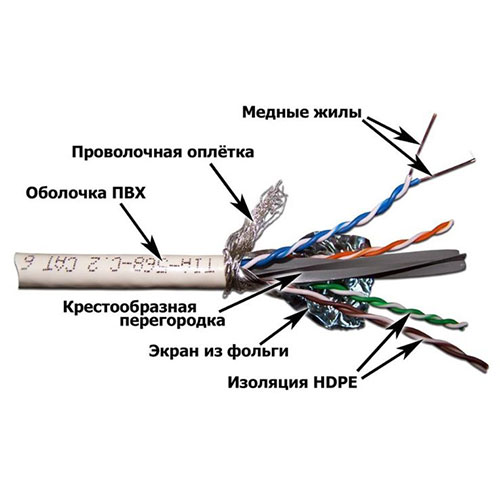 Кабель LANMASTER FTP, 4 пары, кат. 6, с перегородкой, 250Mhz, PVC, синий, 305 м