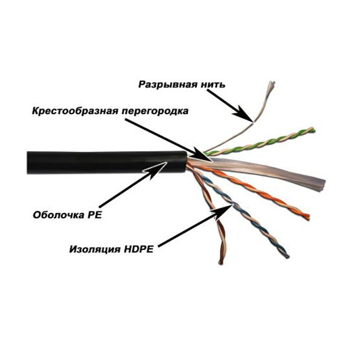 Кабель LANMASTER UTP, 4 пары, кат. 6, с перегородкой, 550Mhz, PE, для внешней прокладки (305 м) |