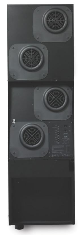 Поддержание заданной температуры обеспечивается автоматическим регулированием скорости вращения вентиляторов. Встроенный в блок вентиляции ЖК-дисплей отображает температуру в стойке, аварийные состояния и позволяет изменять значения уставок. Дистанционный контроль и управление блоком обеспечивается встроенной картой сетевого управления. Данный блок монтируется на задней панели серверной стойки NetShelter SX или VX и таким образом не занимает места в стоечном пространстве.