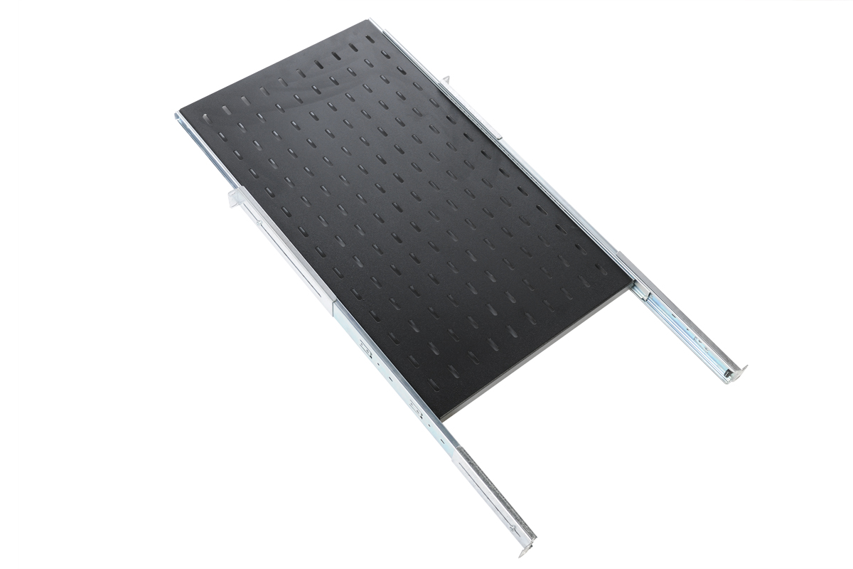 ТСВ-45-9005— Полка перфорированная выдвижная с телескопическими направляющими, глубина 450 мм, цвет черный.
