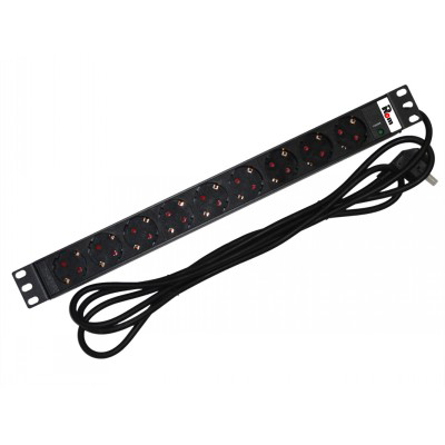Блок розеток Rem-16, с инд., 9 Shuko, 16A, алюм., 19", шнур 3 м.