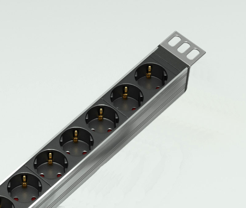 Блок силовых розеток имеет семь портов стандарта Schuko, выполнен в анодированном алюминиевом корпусе. Розетки расположены горизонтально, для удобного подсоединения коленчатых штекеров. На лицевой части блока установлен выключатель. Вход кабеля питания — IEC 60320 C20. Кабель питания в комплект поставки не входит. Совместим со всеми линейками 19” монтажного оборудования. Поставляется в индивидуальной упаковке с комплектом крепежа. Выполнен в системе несущих конструкций 482,6 мм по ГОСТ 28601.2 (19-дюймовые конструктивы по МЭК 297).