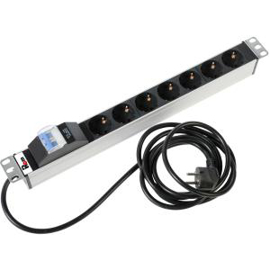 Блок розеток Rem-16, с фил. и инд., 7 Shuko, 16A, алюм., 19", шнур 1,8 м.
