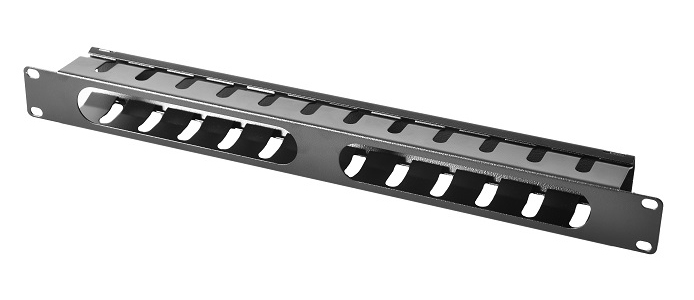 ГКЗ-1U-9005— Органайзер кабельный горизонтальный 19″1Uс крышкой, цвет чёрный.