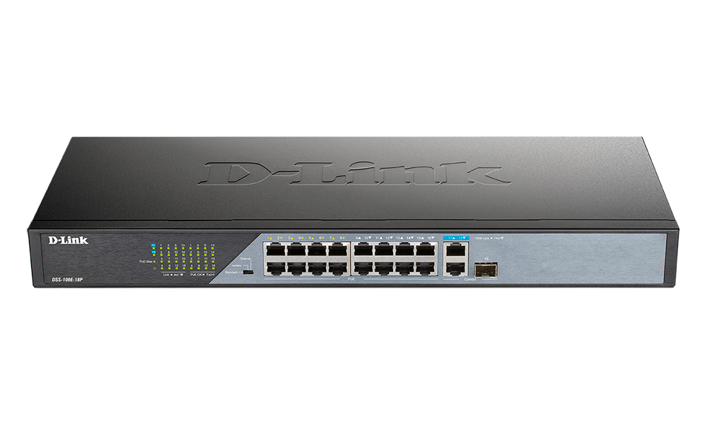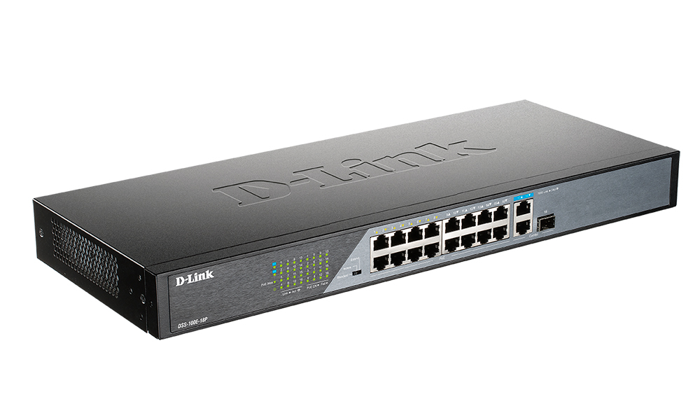 Неуправляемый коммутатор DSS-100E-18P, оснащенный 16 портами 10/100Base-TX с поддержкой PoE, 1 портом 10/100/1000Base-T и 1 комбо-портом 100/1000Base-T/SFP, позволяет пользователям легко подключать и подавать питание по Ethernet-кабелям на PoE-совместимые устройства, например на сетевые камеры, и является оптимальным решением для развертывания систем видеонаблюдения. Защита от статического электричества 6 кВ на медных портах обеспечивает их устойчивость к наведенному напряжению.