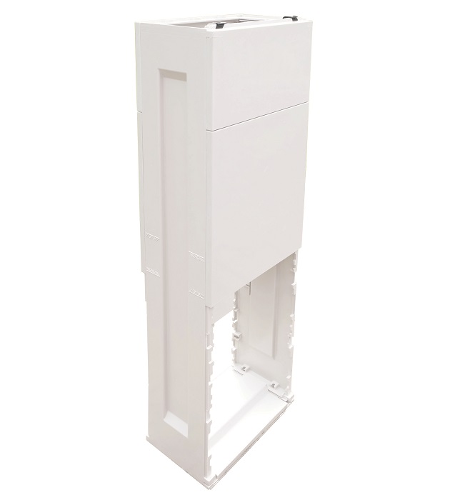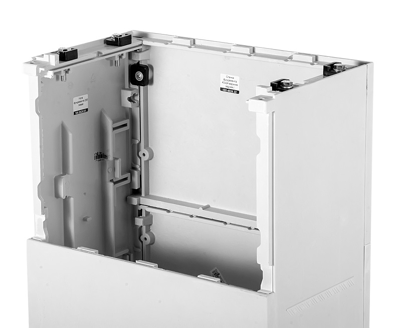 Фундамент имеет полностью разборную конструкцию с фиксированной высотой — 890 мм и глубиной 250 мм. Благодаря применению пазовых элементов обеспечивается жесткость конструкции. Передние стенки фундамента легко снимаются без применения инструментов, что позволяет легко заводить кабель в уже установленный шкаф. Модульность конструкции делает возможным применение совместно цоколя и фундамента. Цвет: RAL7035 (светло-серый).