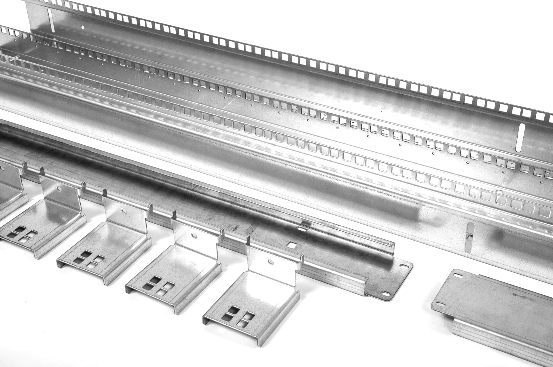 Комплект поставки: вертикальная направляющая — 4 шт., кронштейн поперечный — 4 шт., кронштейн монтажный — 8 шт., винт резьбоформирующий М5х10 — 16 шт., винт резьбоформирующий М5х12 — 24 шт., гайка с фиксатором М6 -24 шт. Комплект поставляется в одной коробке.