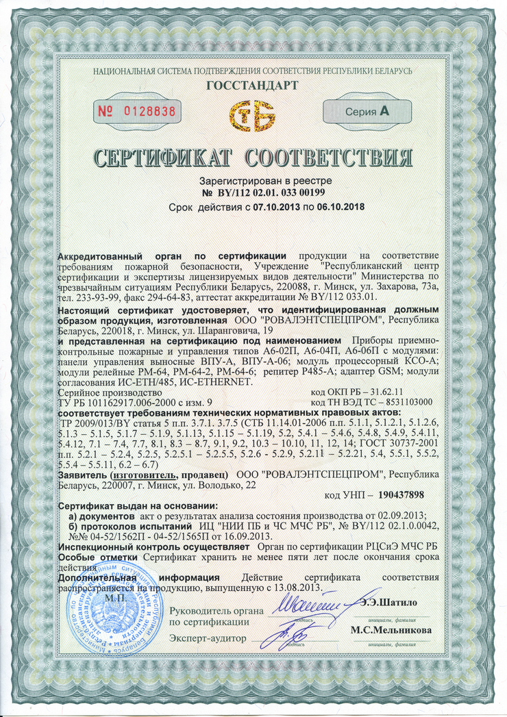 Универсальная внешняя цифровая шина RS485, протяженностью до 1200м, для объединения приборов в сеть и контроля их состояния с помощью клавиатуры ВПУ-А-06 или ПЭВМ.