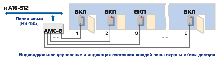 Модуль устройств доступа АМС-8 предназначен для работы в составе ППКОП «А16-512» и служит для организации