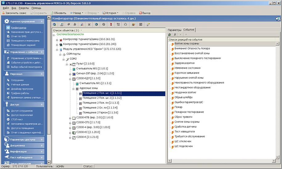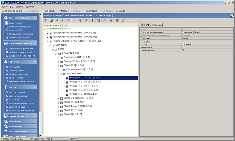 PERCo-SM01 «Администратор» - для занесения и отображения конфигурации приборов ИСО «Орион», объединенных пультом управления C2000 или C2000M, во многоуровневом списке объектов системы безопасности.