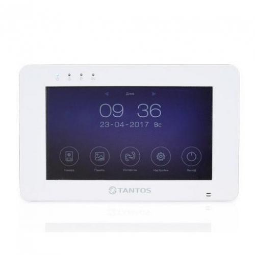 Tantos Rocky Wi-Fi - монитор цветного видеодомофона 7" резистивный сенсорный экран, разрешение 800x480, hands free, с функцией Wi-Fi (может работать в беспроводных или проводных сетях Ethernet), подключение 2-х вызывных панелей с возможностью связи вызывных панелей с приложением "vhOme" для iOS и Android. Подключение 2х видеокамер, до 4х мониторов в параллель. Встроенная память на 100 фото. Запись фото или видеона microSD карту до 32 ГБ (в комплект не входит). Запись по детектору движения, по одному каналу. Питание 220В, габариты: 205х128х19мм.