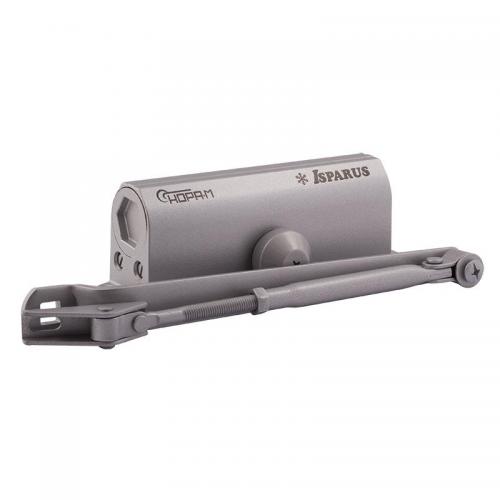 Доводчик для дверей весом 80 - 140 кг. Класс доводчика EN4-6. двухскоростной, с рычажной тягой, установочный размер 165х19 мм, габариты 182х62х42 мм, -45...+60 °С, цвет - бронза.