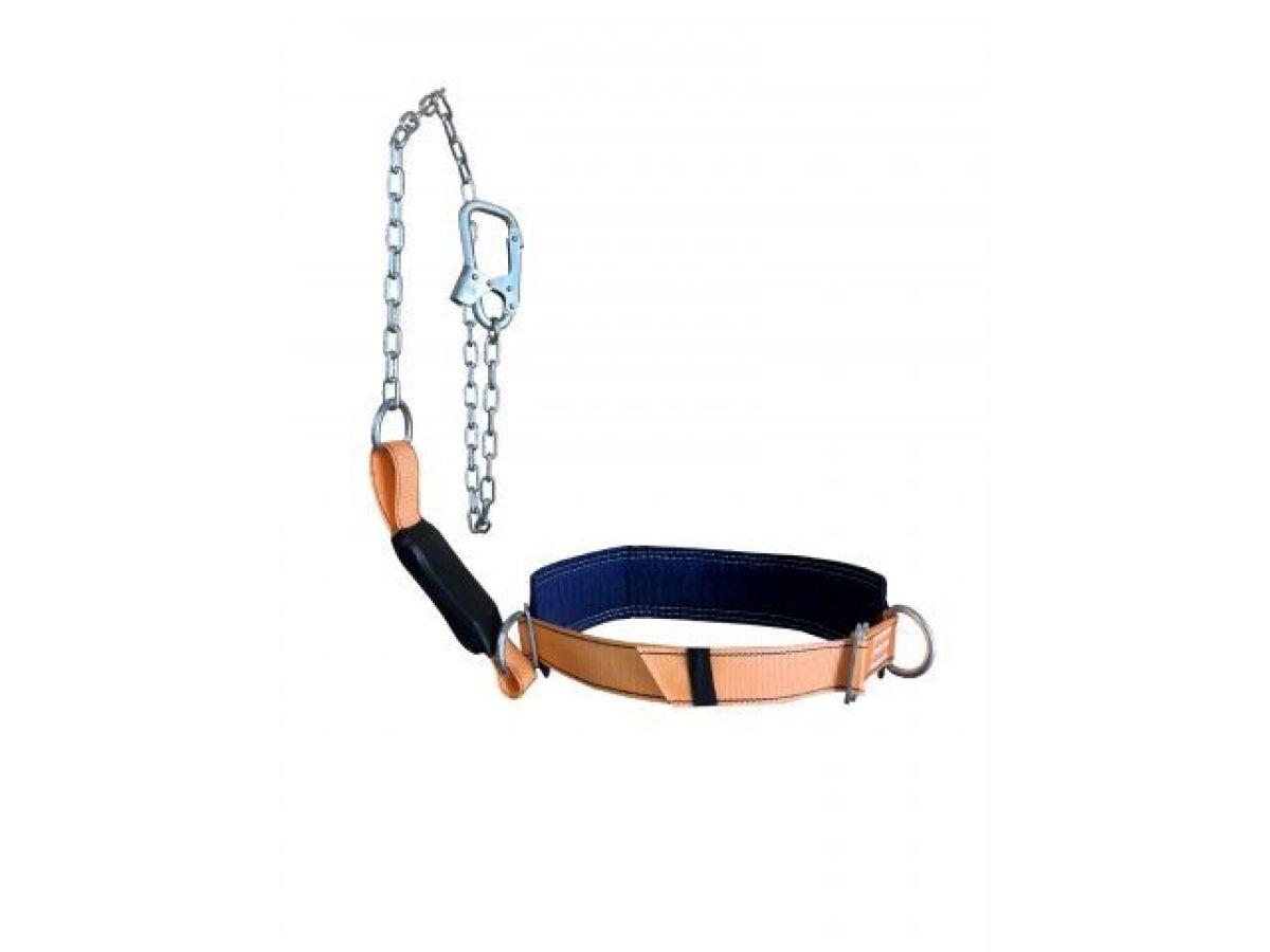 Состоит из ремня с пряжкой, кушака и двух D-колец для присоединения стропа. Удерживающая система оснащена стропом из стальной цепи (строп Г) с монтажным карабином.