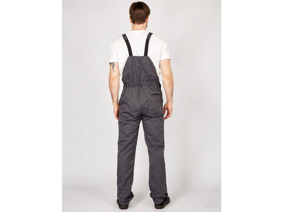 Полукомбинезон: прямого силуэта с застёжкой в левом боковом шве на три петли и пуговицу, гульфик на молнии. Бретели на резинках регулируются фастексами.