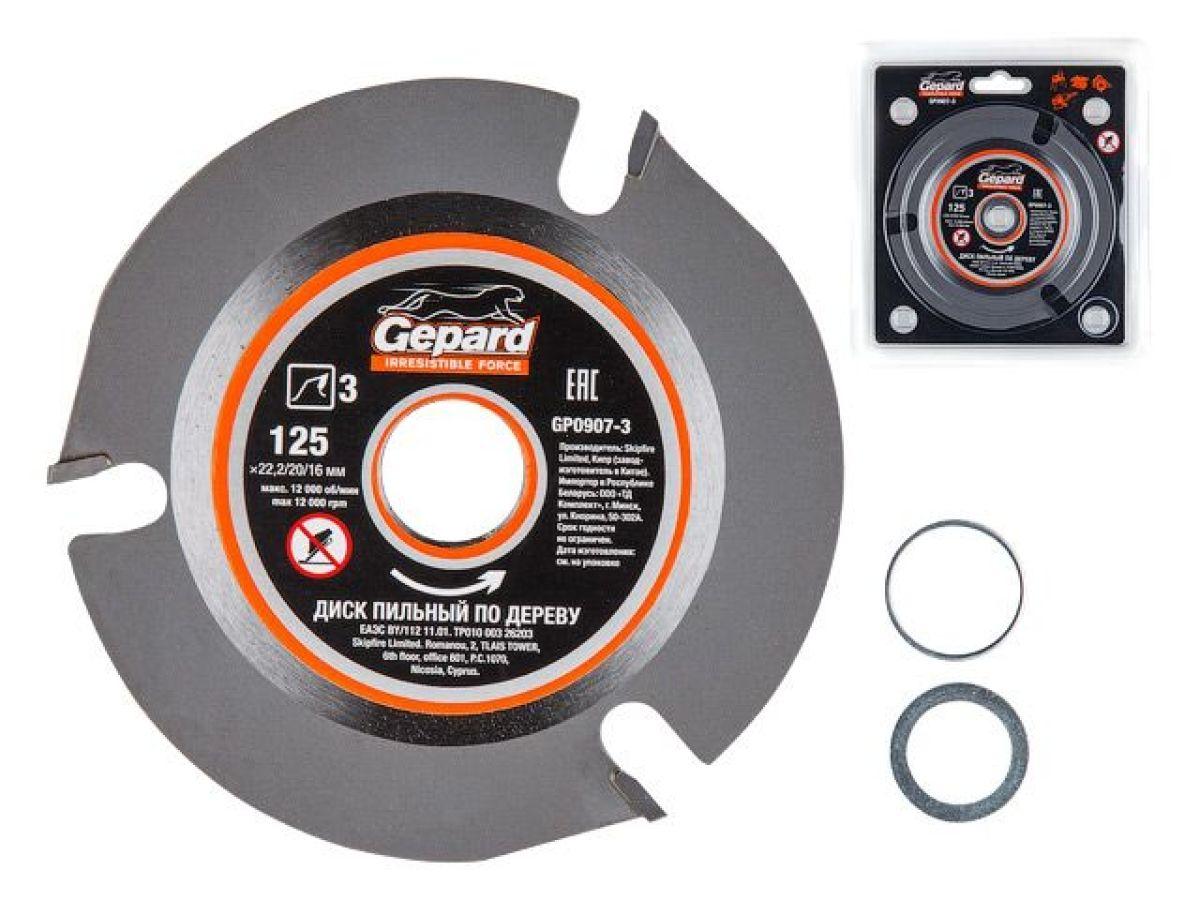 | | Диск пильный 125х22.2/20/16 мм 3 зуб. по дереву GEPARD (для УШМ, твердоспл. зуб) |