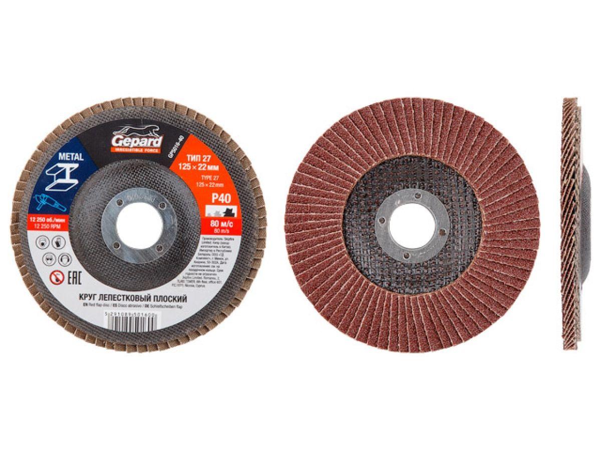| | Круг лепестковый 125х22мм P40 плоск. GEPARD (GP5016-40) (плоский КЛТ-1) |