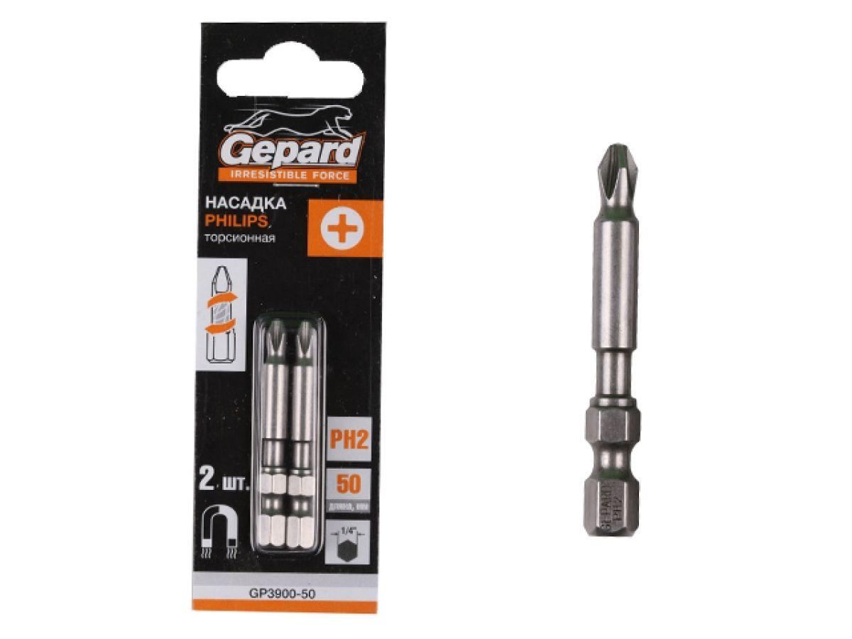 | | Насадка крестообразная PH2 50мм 2шт торсионная GEPARD (GP3900-50) (бита Phillips сталь S2 магнитная) |