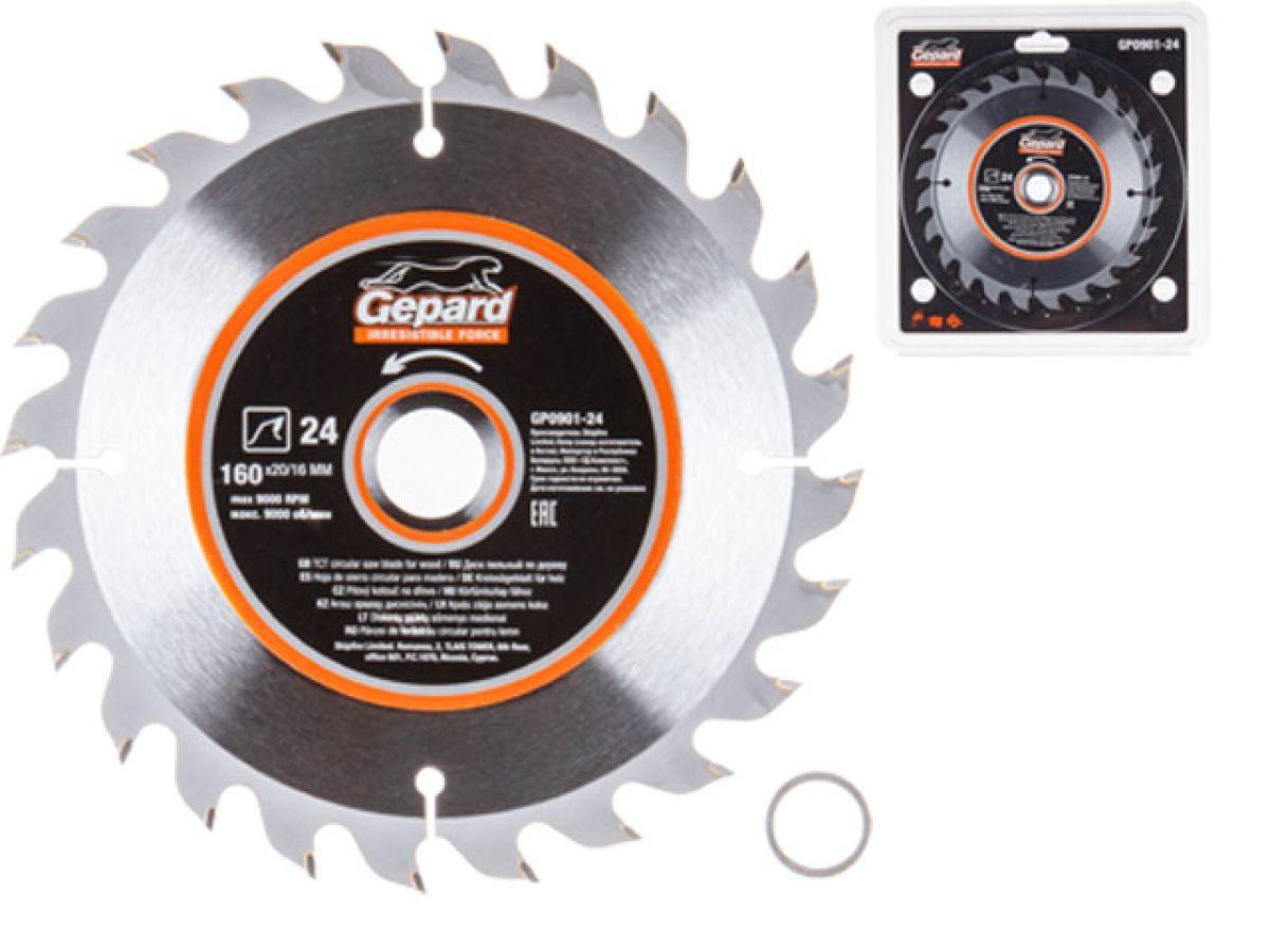 | | Диск пильный 160х20/16 мм 24 зуб. по дереву GEPARD (твердоспл. зуб) |