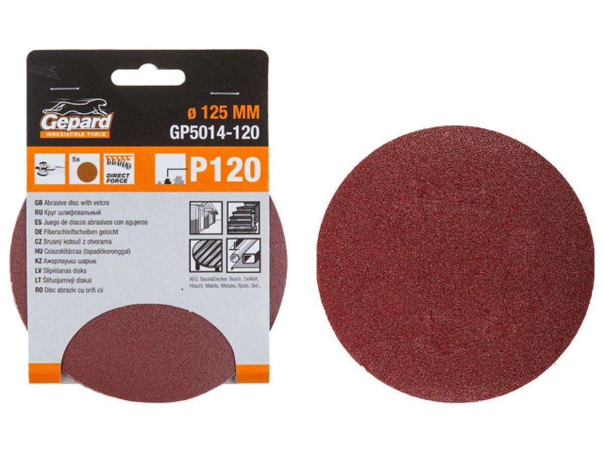 | Шлифлист 125мм круг Р120 д/дерева 5шт. GEPARD (GP5014-120) (круг абразивный шлифовальный) |