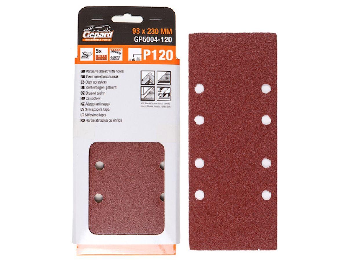 | | Шлифлист 93х230мм Р120 д/дерева 8 отв. 5шт. GEPARD (GP5004-120) (лист абразивный шлифовальный перфорированный) |