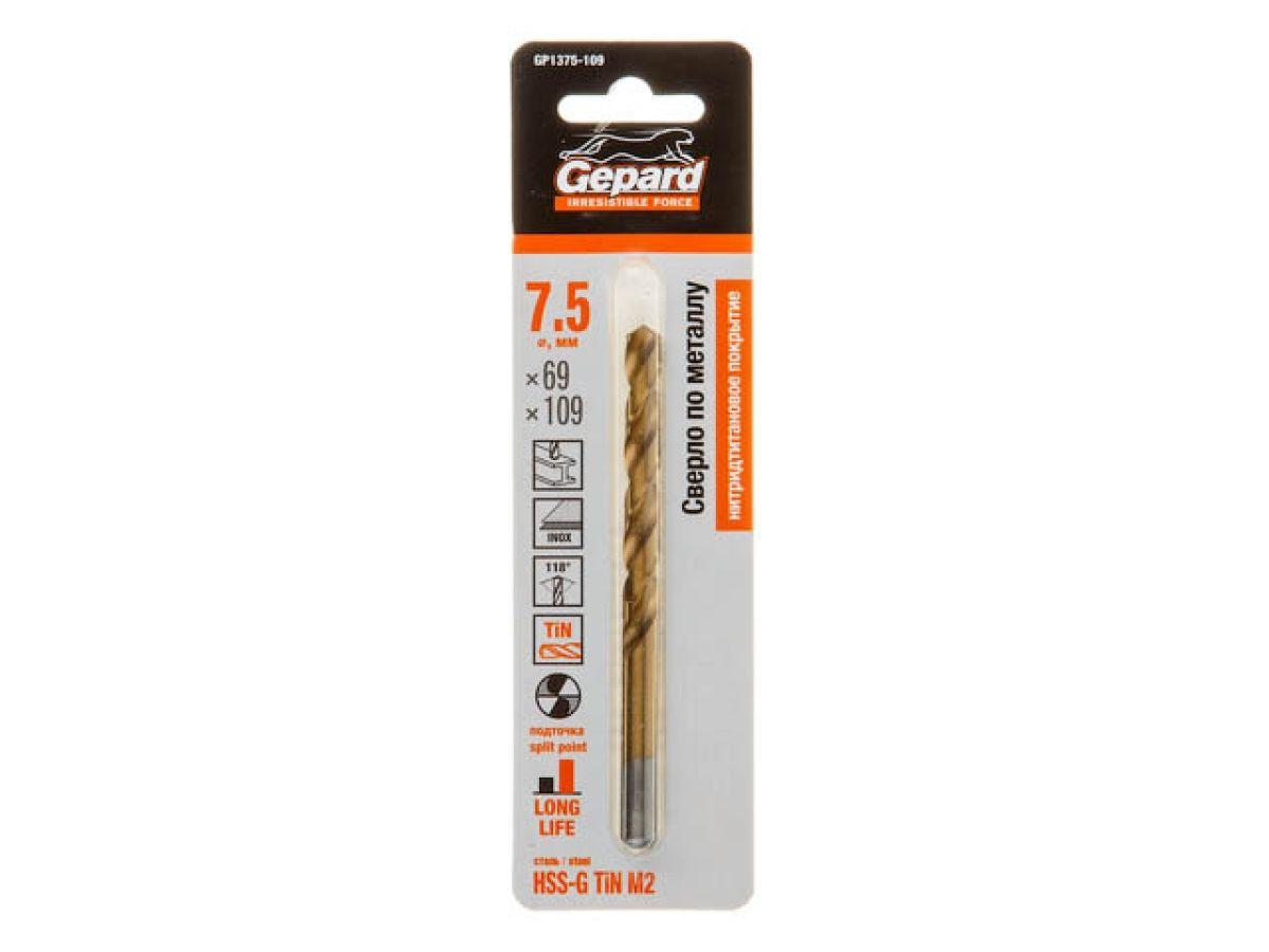 | | Сверло по металлу ц/х 7.5х69х109 мм HSS TIN GEPARD (нитридтитановое покрытие) |
