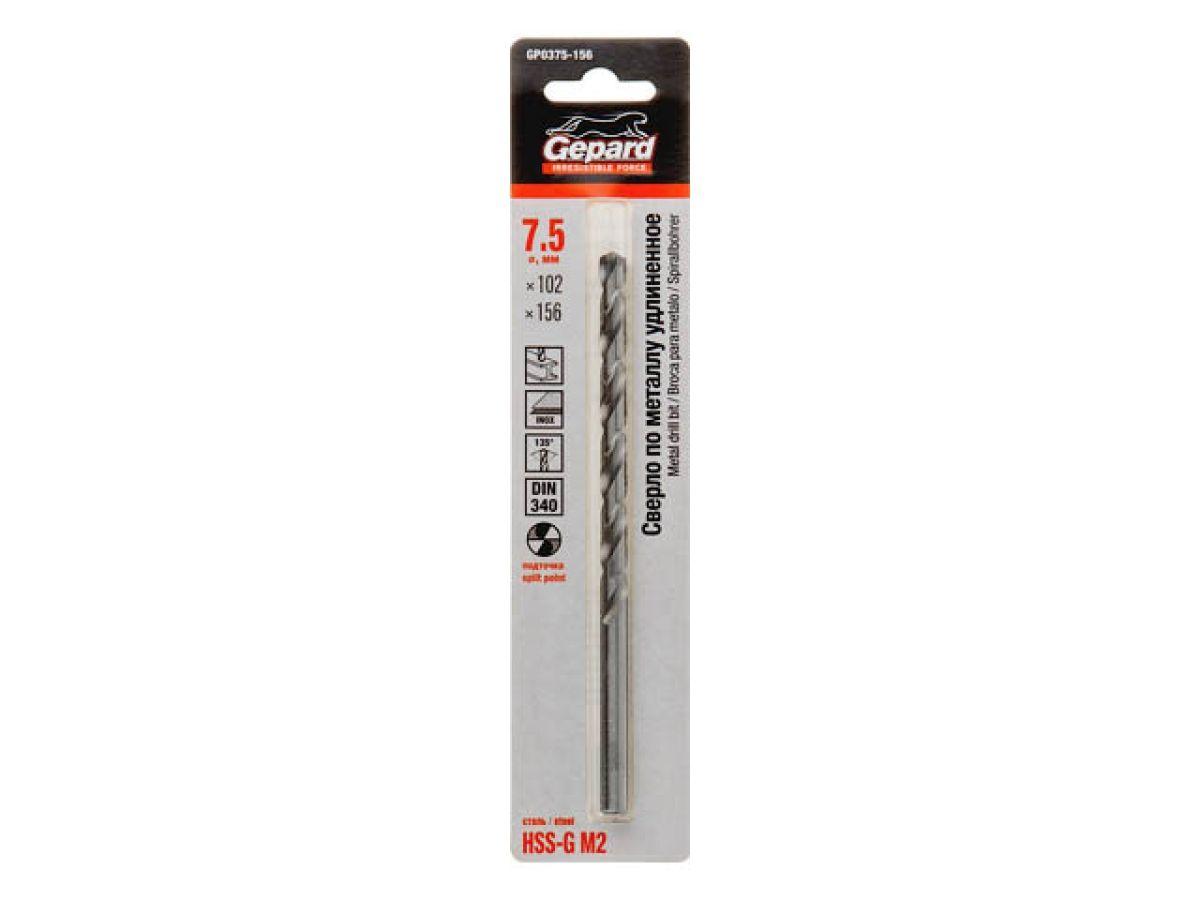 | | | Сверло по металлу ц/х 7.5х102х156 мм удлиненное HSS-G GEPARD |