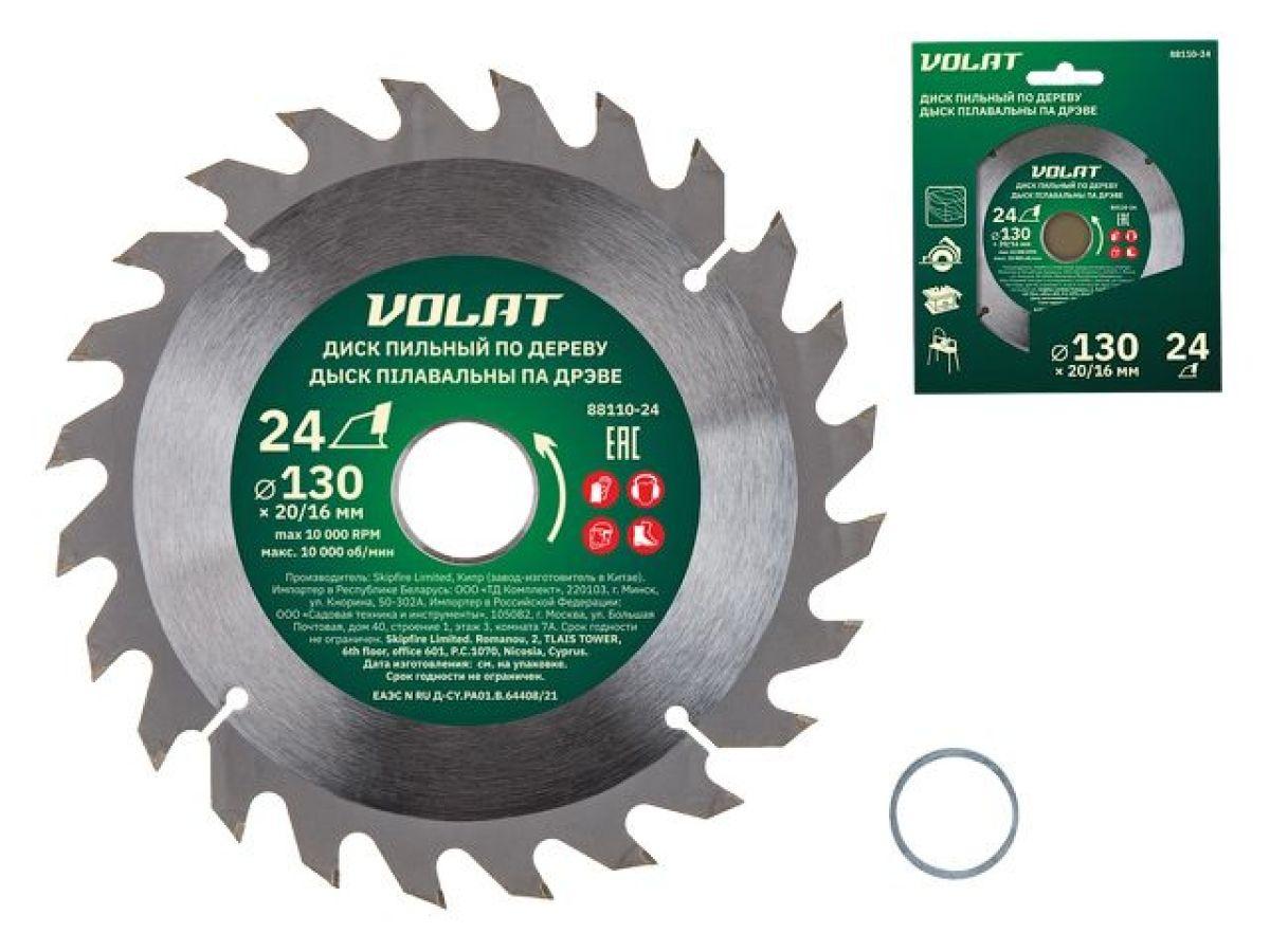 | | Диск пильный 130х20/16 мм 24 зуб. по дереву ВОЛАТ (твердоспл. зуб) |