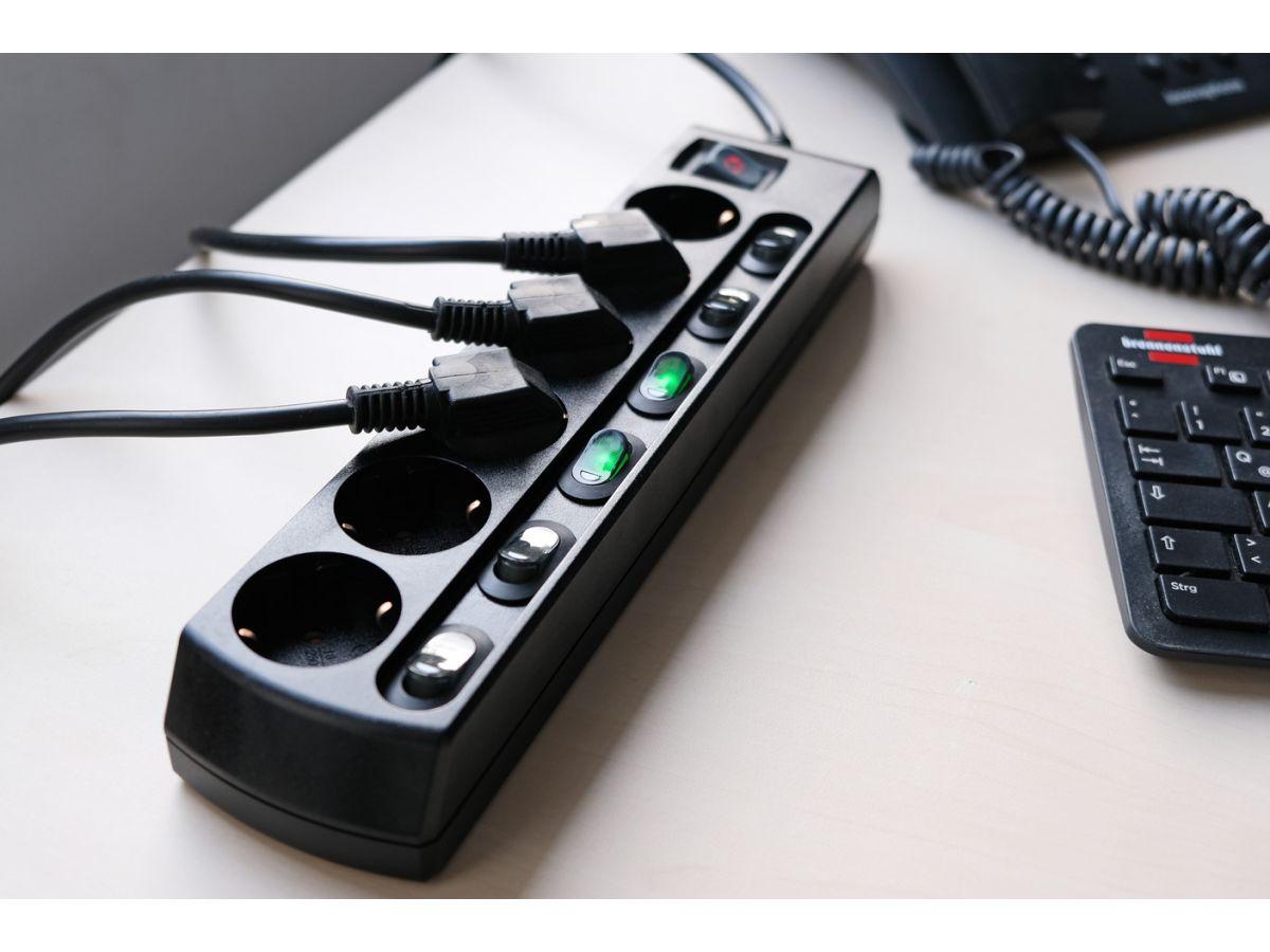 | Удлинитель с напольным выключателем для комфортного использования. Все подключенные электроприборы включаются и выключаются выносным напольным выключателем, в то время как сам удлинитель находится под столом или за шкафом