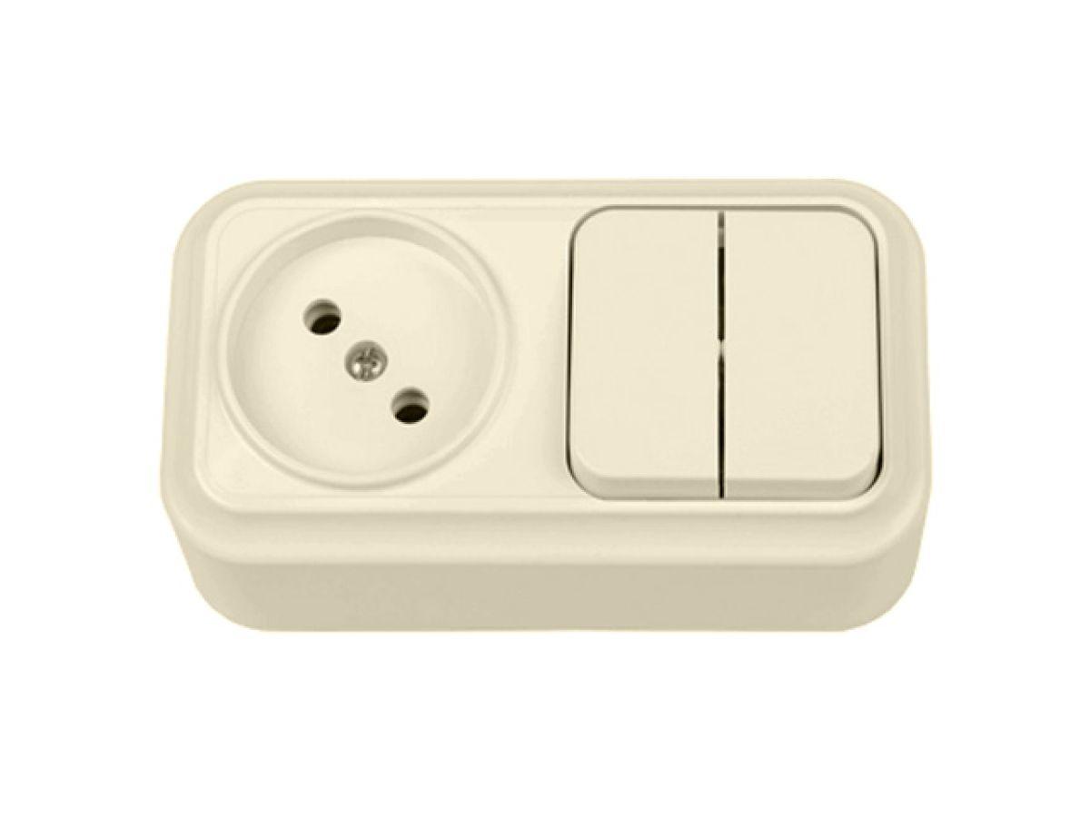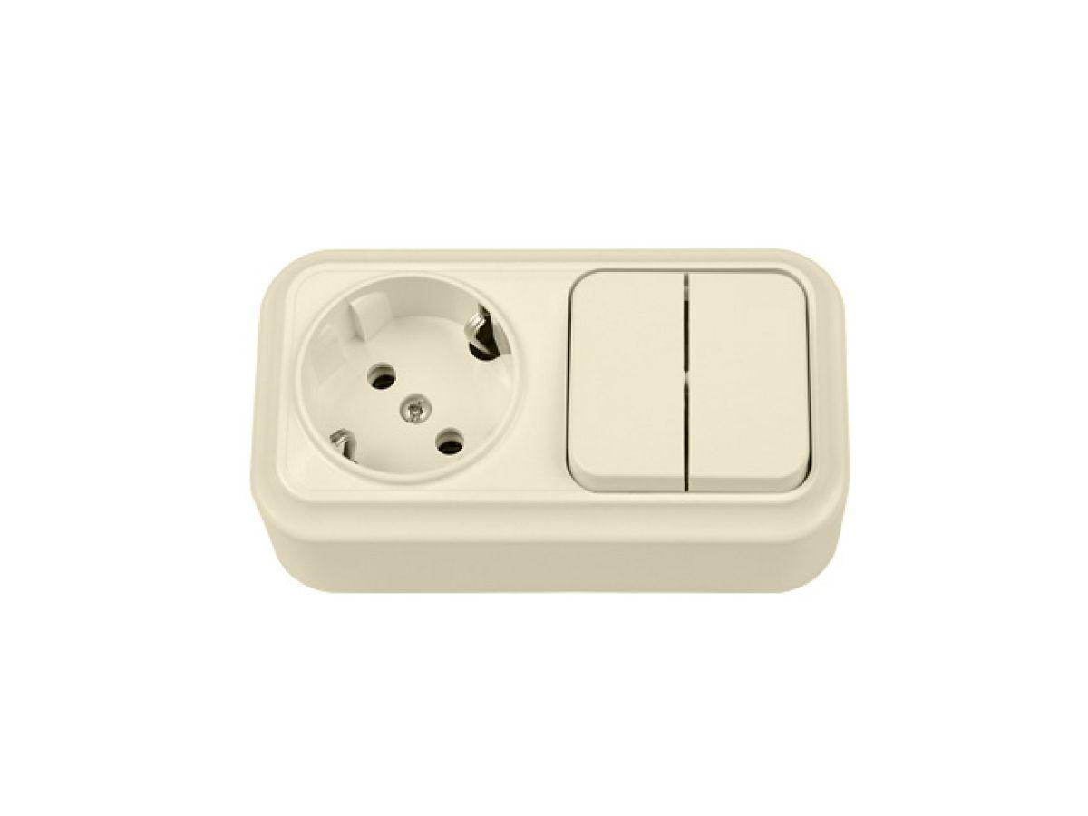 | | Блок выкл. 2 клав. + розетка (открытая, б/з) бежевая, Вариант, BYLECTRICA |
