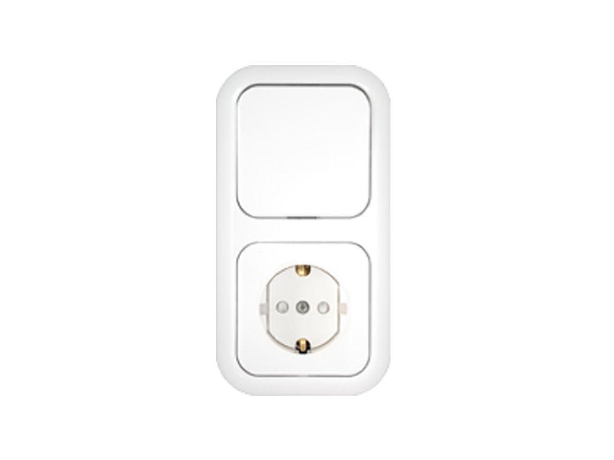 | Блок выкл. 1 клав. + розетка (скрытая, с/з) со световой индикацией, белая, Стиль, BYLECTRICA |