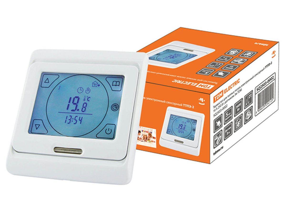 | Электронный сенсорный термостат для теплых полов TDM ТТПЭ-2 16А, 250В, с датчиком 3 м SQ2503-0002 предназначен для ручного, автоматического и программируемого поддержания установленной пользователем температуры в помещениях, оборудованных системами электрического обогрева <теплый пол> с использованием выносного и встроенного датчиков температуры.
