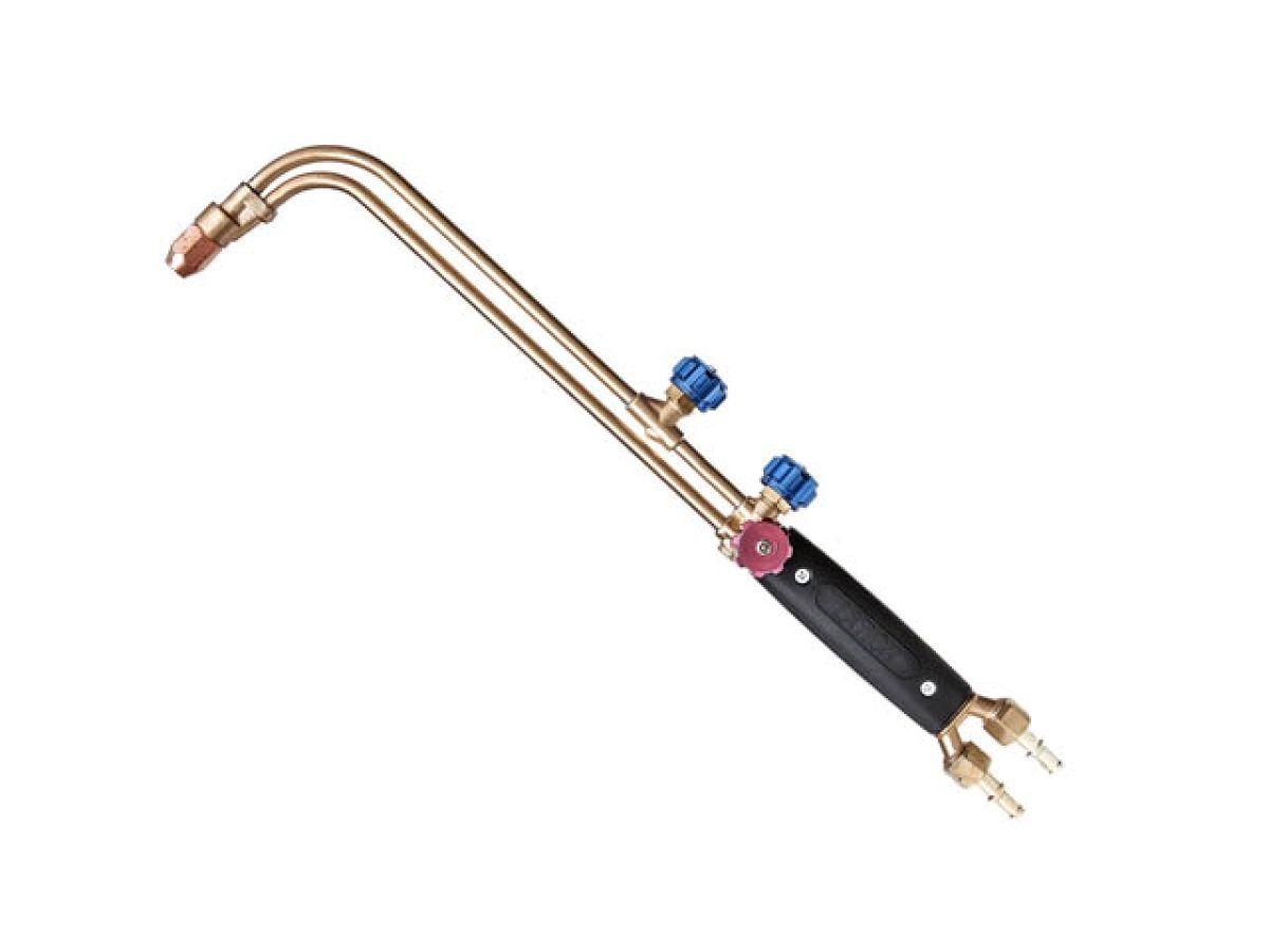 | Резак трехтрубный ацетилено-кислородный с внутрисопловым смешением газов предназначен для резки раскроя и разогрева деталей, заготовок, листового и сортового проката из черных металлов. За счет внутрисоплового смешения газов резаки имеют повышенную стойкость к обратному удару и способны длительное время работать в тяжелых условиях. Резак имеет стандартный мундштук и совместим с мундштуками других производителей