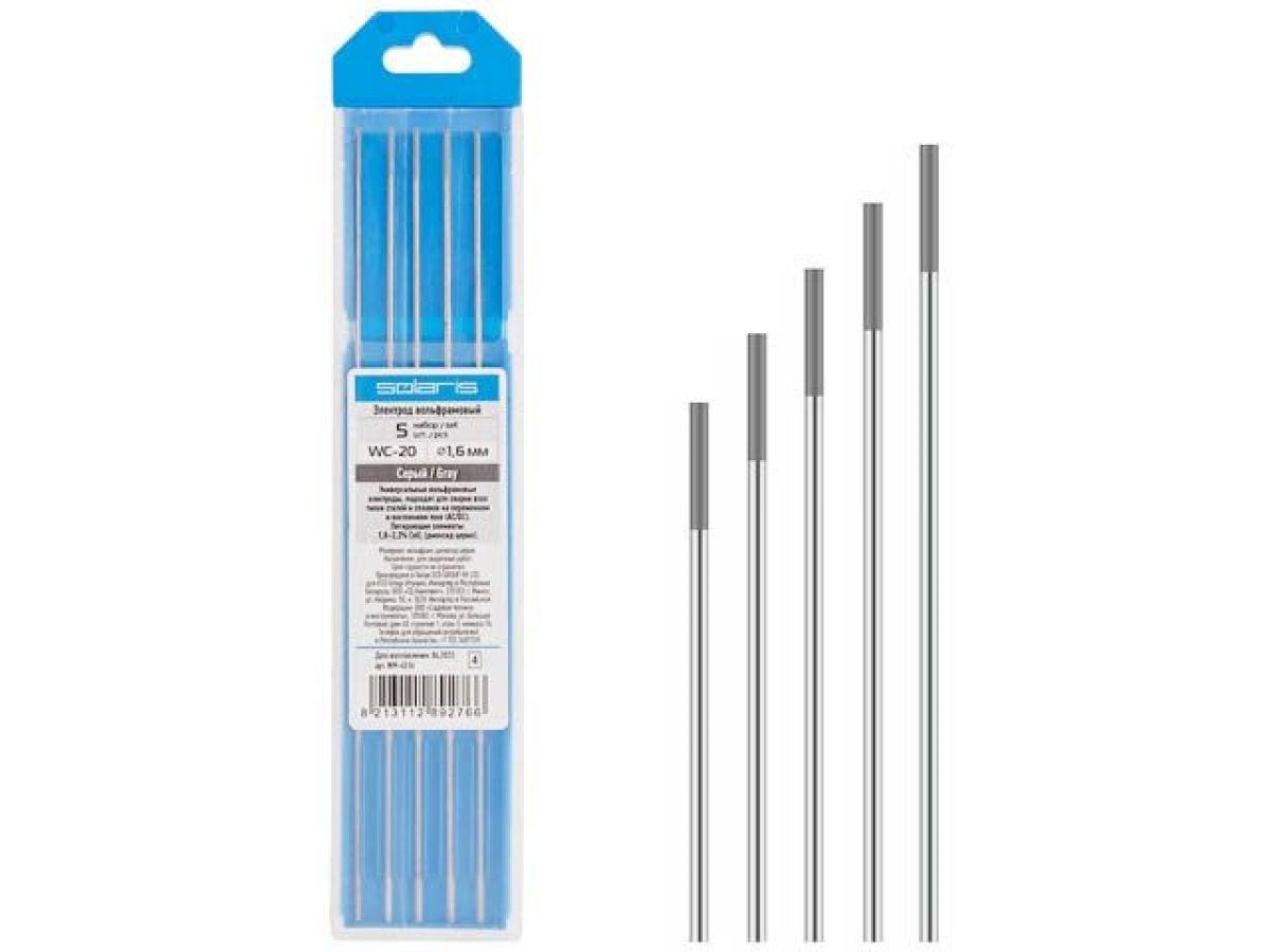 | | Электрод вольфрамовый серый WC-20, Ф 1,6 мм (набор 5 шт) SOLARIS |