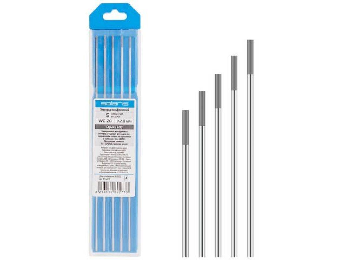 | | Электрод вольфрамовый серый WC-20, Ф 2,0 мм (набор 5 шт) SOLARIS |