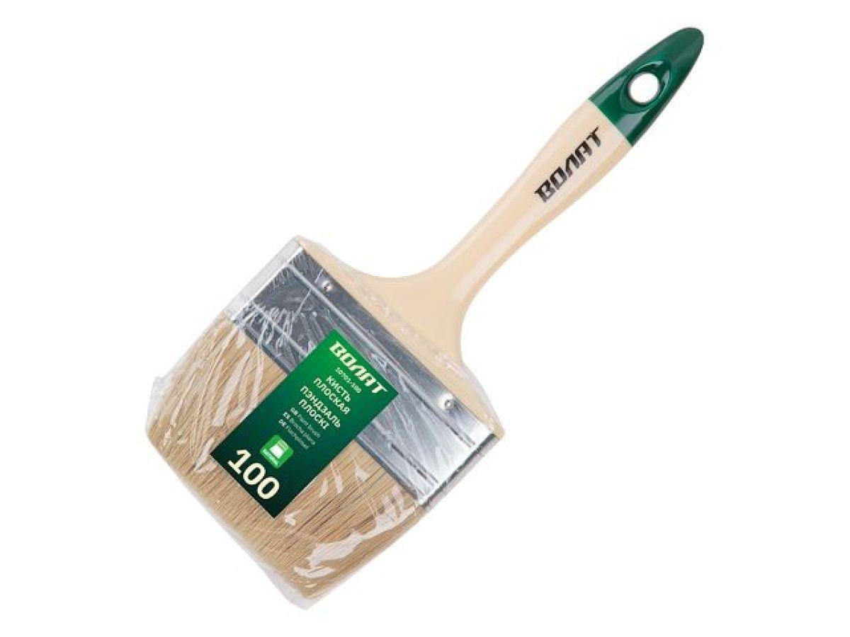 | Кисть плоская 4"-100мм ВОЛАТ (флейцевая малярная, дерев.рукоять) |