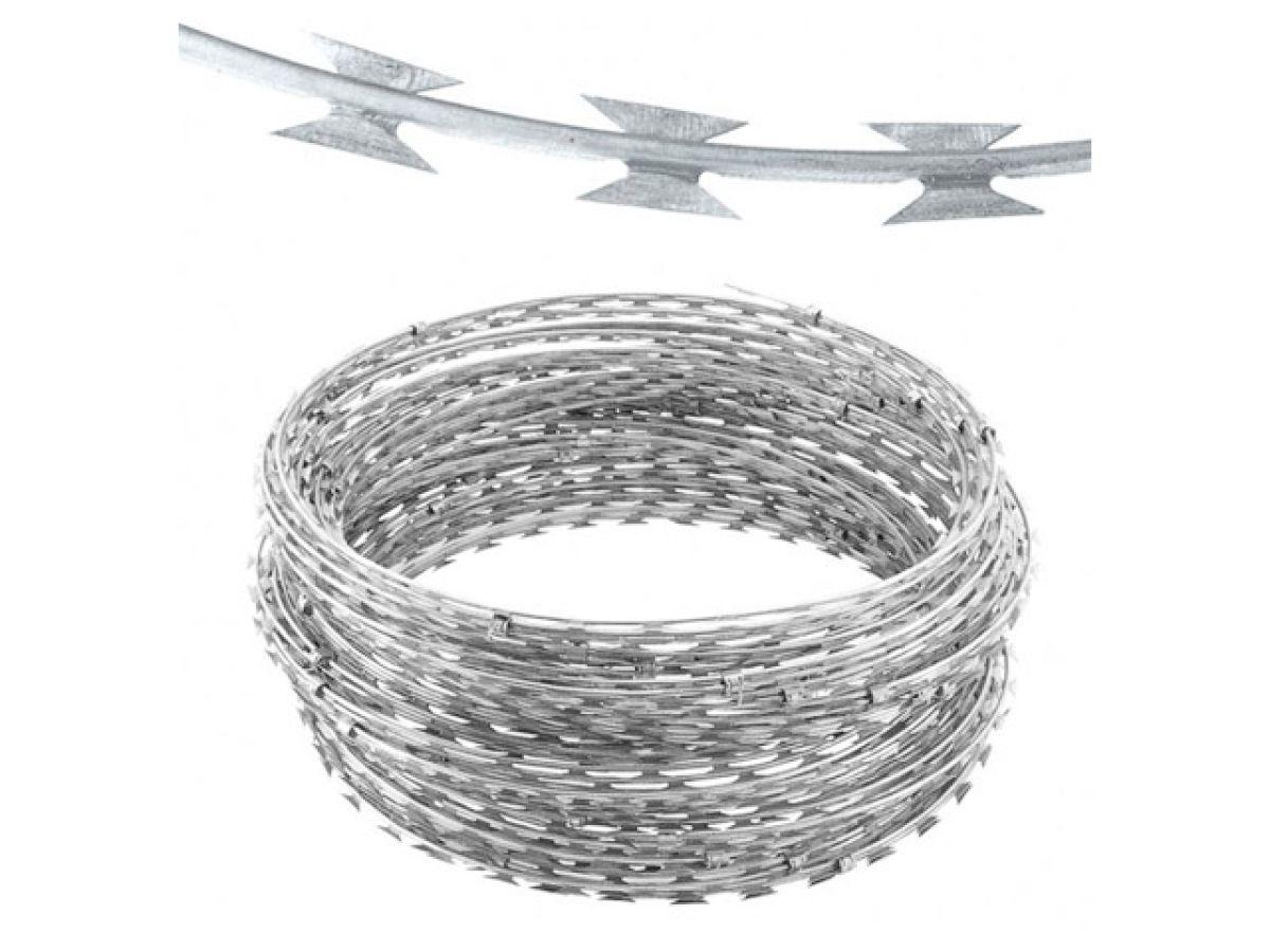 Егоза АКЛ (армирующая колючая лента) - армированная оцинкованная лента с режущими пластинами определенного размера через определенное расстояние. Изготавливается в соответствии с ГОСТ и имеет свои параметры: диаметр спирали, количество витков, количество скреплений (клепок).