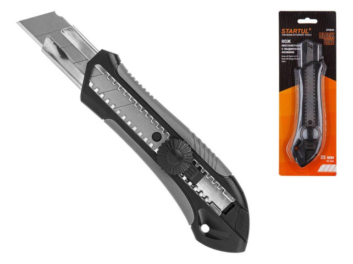 | | Нож пистолетный с выдвижным лезвием 25мм BLACK LINE STARTUL (ST0926) (ABS+TPR покрытие корпуса) |