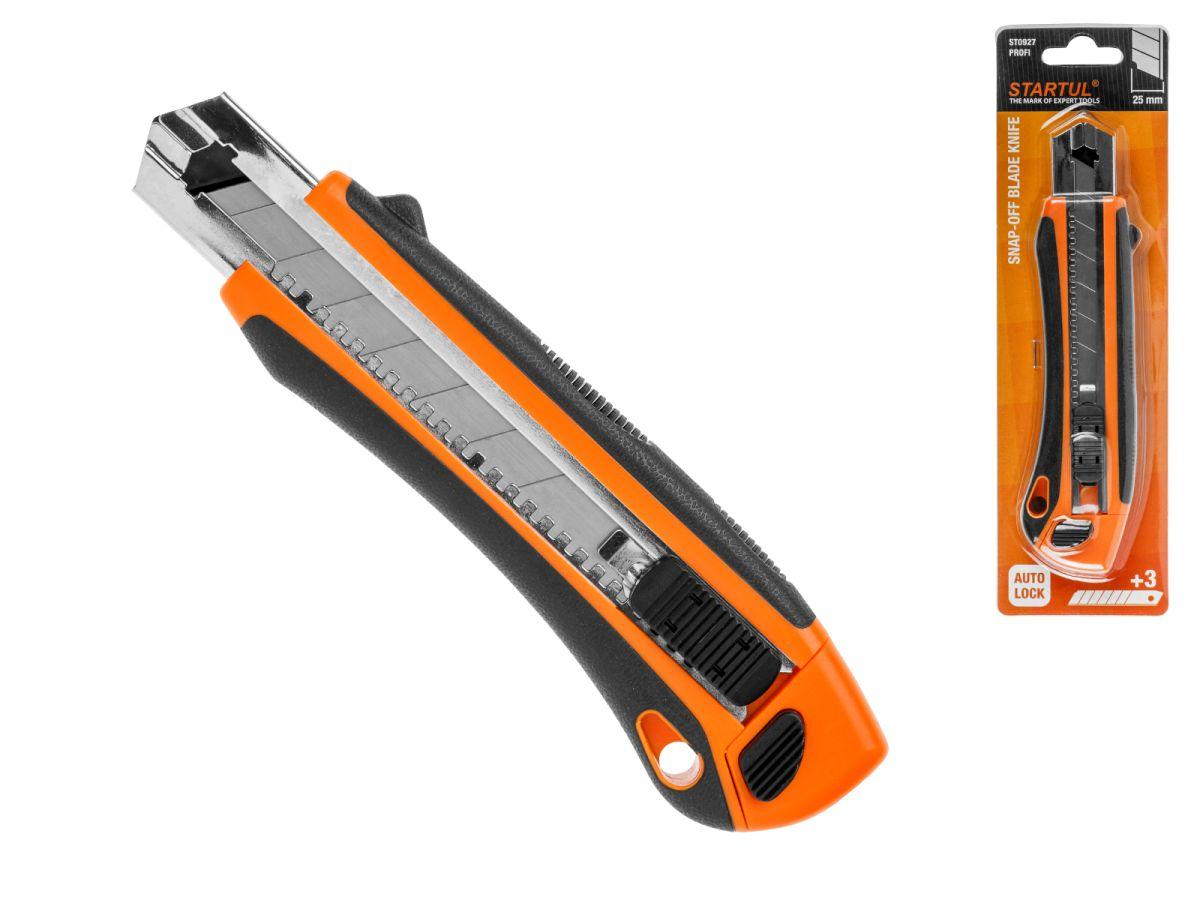 | | Нож пистолетный с выдвижным лезвием 25мм + 3 лезвия STARTUL PROFI (ST0927) (ABS + TPR покрытие корпуса 3 лезвия в комплекте) |